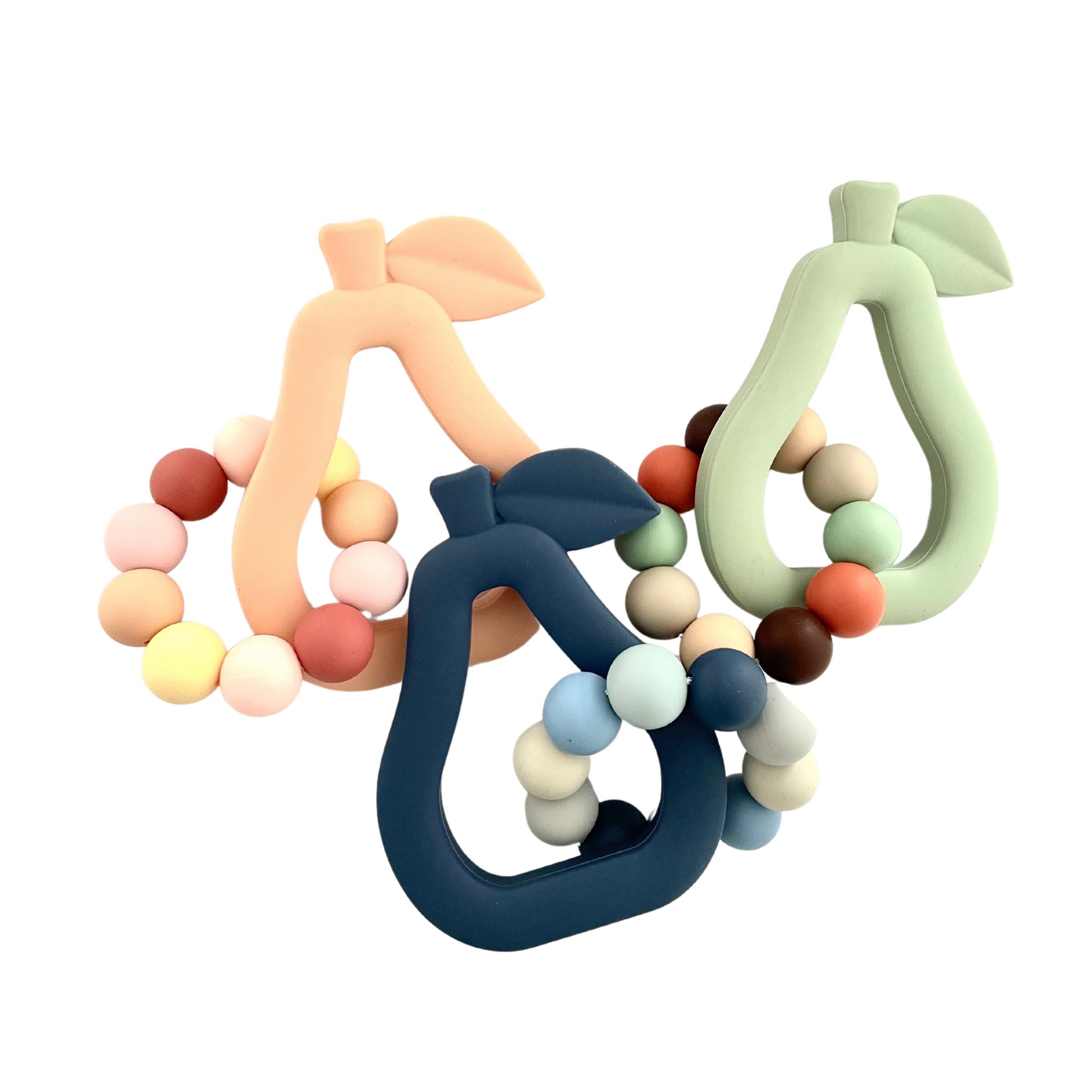 Say hello to endless teething adventures as your little one discovers the joy of chewing, soothing, and exploring with our Silicone Pear and Bead Ring duo. Whether it's at home, on-the-go, or during playtime, our innovative pairing is here to make teething a breeze!